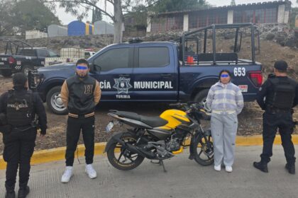 Aseguran motocicleta con reporte de robo y detienen a dos personas en Yuriria; localizan otra unidad abandonada con números alterados.